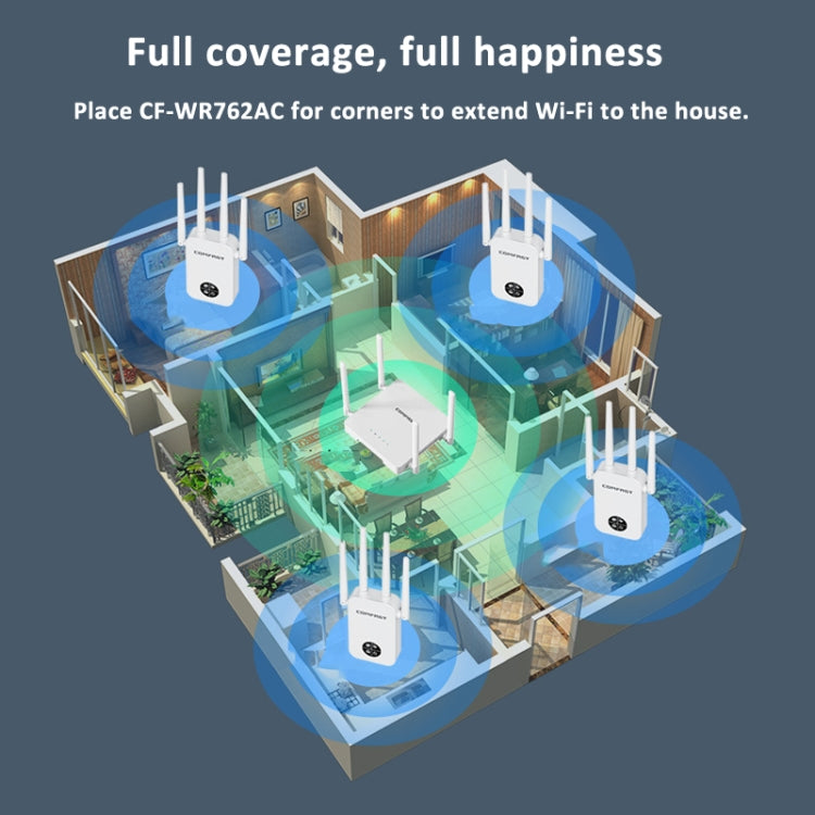 1. CF-WR762AC adopts 11AC dual-band technology, 1200Mbps wireless rate, adapts to Gigabit dual-band routers, expands Wifi signal, and allows you to enjoy a ubiquitous Internet experience