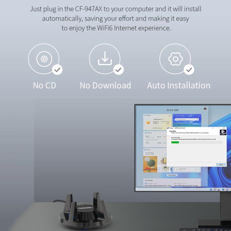 3. Eliminate the tedious driver installation, insert the CF-947AX network card into the computer USB port to automatically install it, saving worry and effort