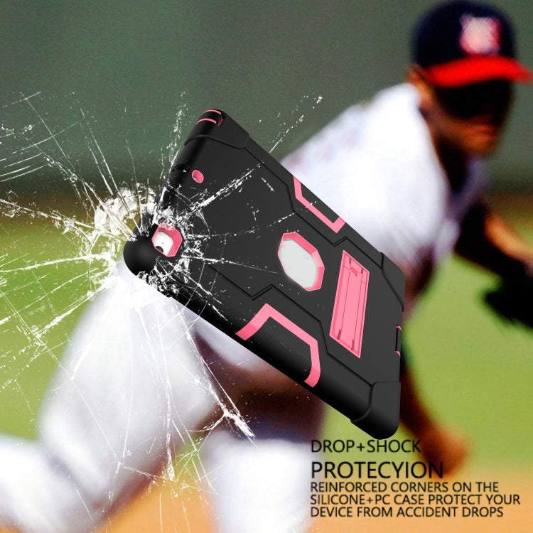 Contrast Color Robot Shockproof Silicone + PC Protective Case with Holder For iPad 9.7 (2017) / (2018)(Black + Rose Red)