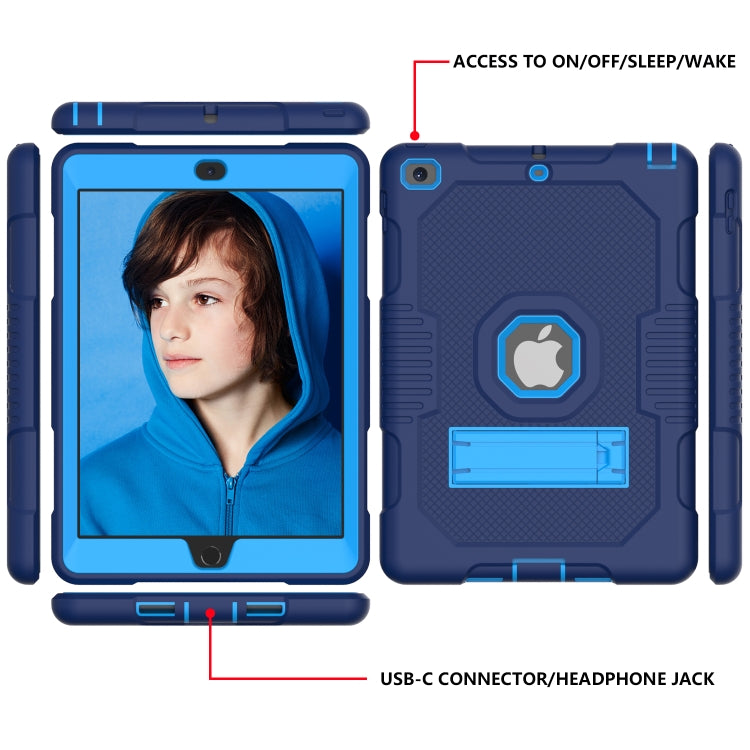 Contrast Color Robot Shockproof Silicone + PC Protective Case with Holder For iPad 9.7 (2017/2018)(Navy Blue)
