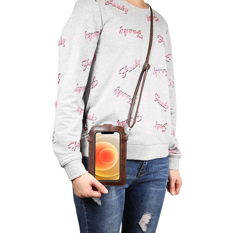 Crazy Horse Textured Riser Touch Screen Phone Case Universal Diagonal Carrying Leather Case Suitable for 5.5-6.9 inch Smartphones(Brown)