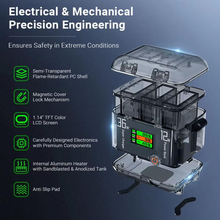 4. Constructed with a semi-transparent flame-retardant PC shell and equipped with a magnetic latching cover for enhanced durability and safety during use.
