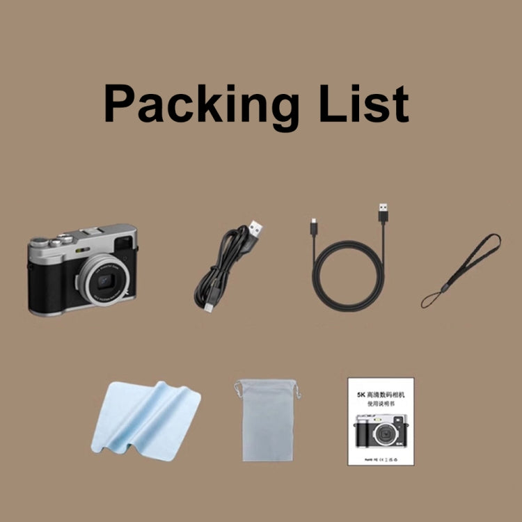DC203 5K/30FPS 2.8-Inch Screen 16X Front And Rear Dual-Camera HD Digital Camera(Black)