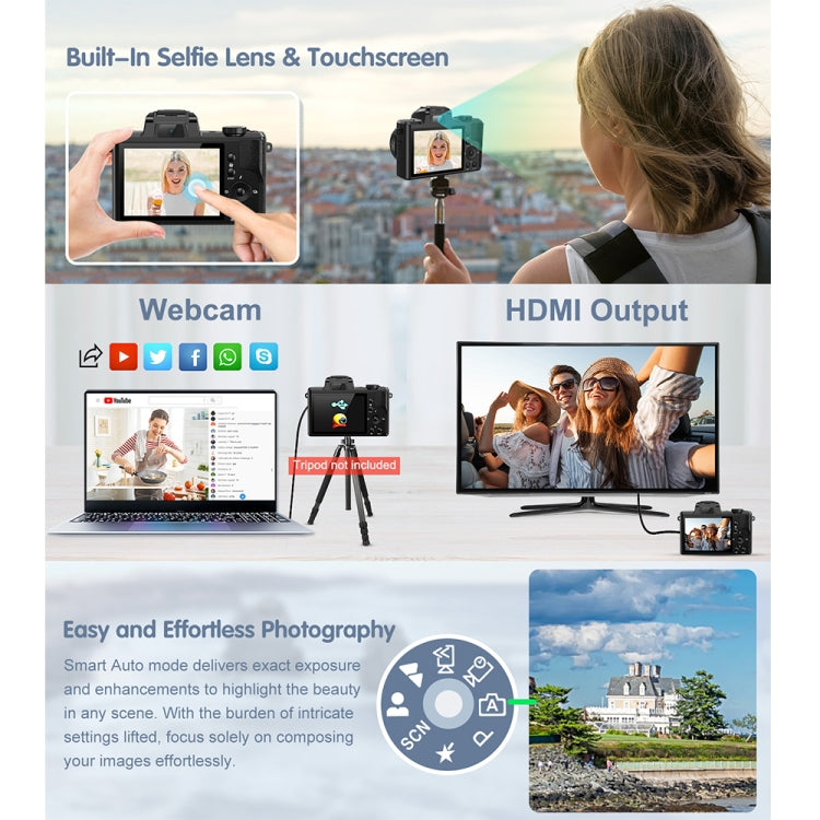 DC206X 5K/30FPS 3.2-Inch 5X Optical Zoom Front And Rear Dual-Camera HD Digital Camera(EU Plug)
