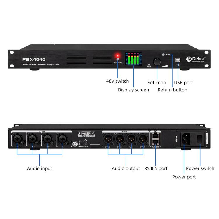 DEBRA FBX4040 DSP Feedback Suppressor Microphone Anti-howling Audio Processor(EU Plug)