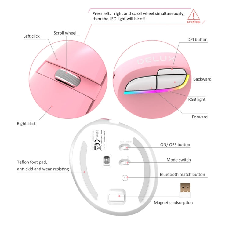 DELUX M618 Mini 2.4G Wireless 2400DPI USB Rechargeable Ergonomic Vertical Mouse (Blue)