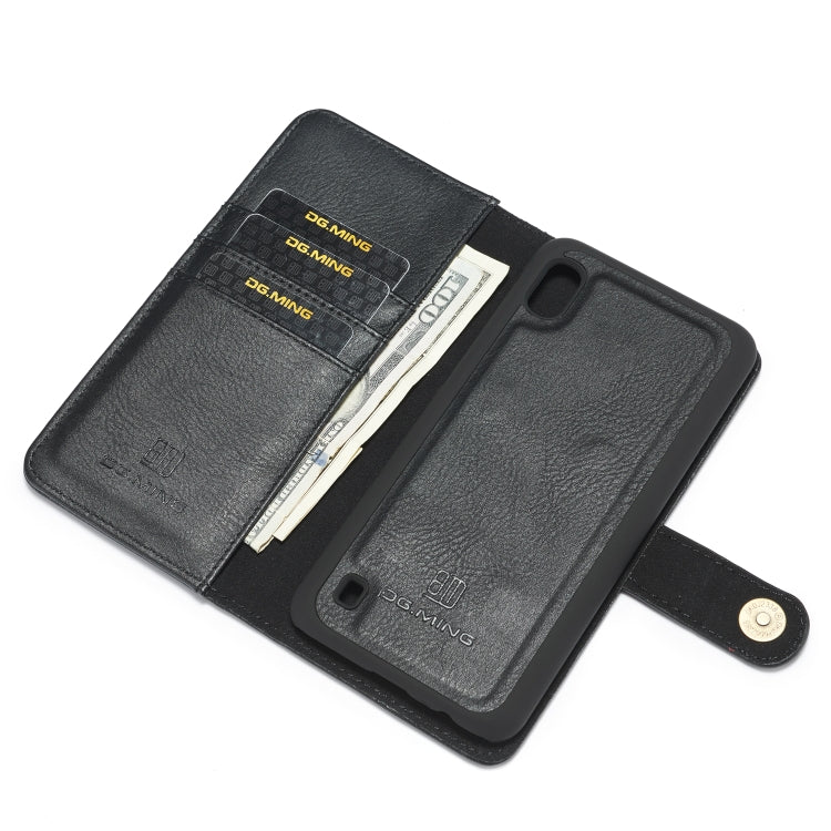 DG.MING Crazy Horse Texture Flip Detachable Magnetic Leather Case with Holder & Card Slots & Wallet for Galaxy A10(Black)