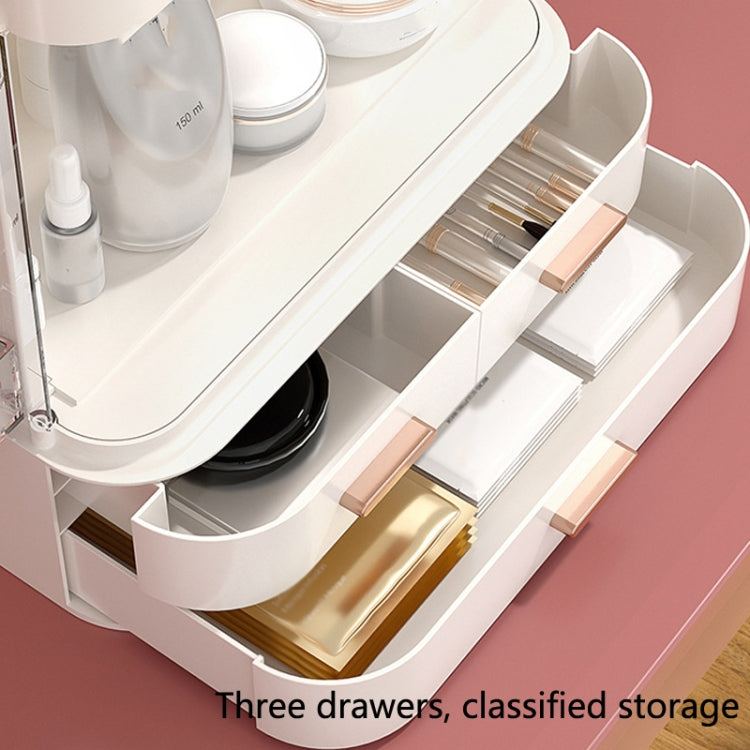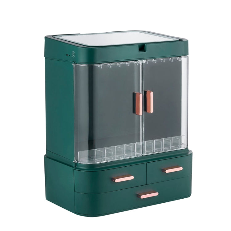 Dust-Proof Drawer Type Cosmetic Storage Box Household Large-Capacity Desktop Lipstick Storage Box, Colour: LED Model Green