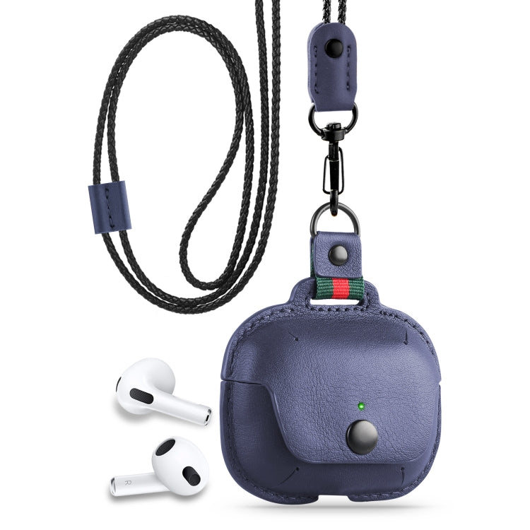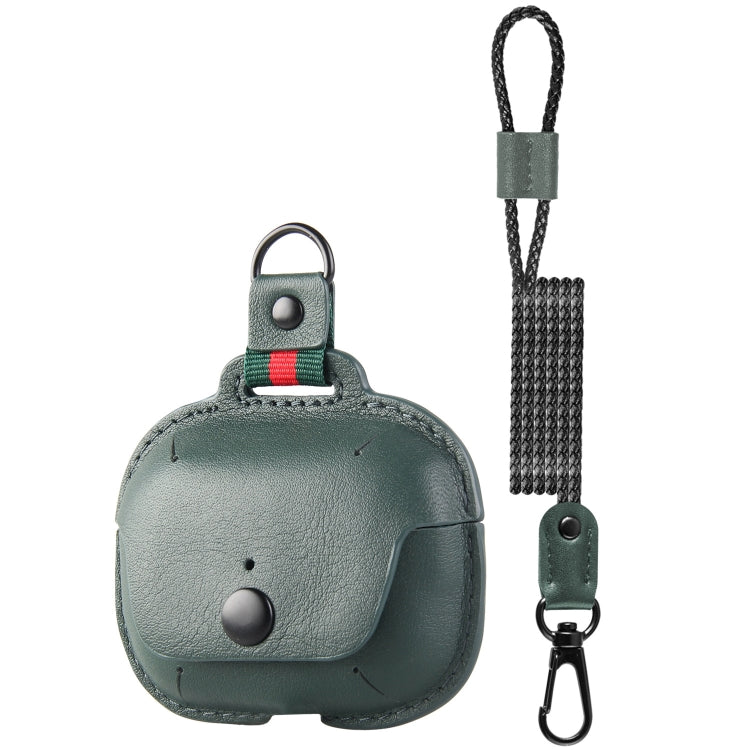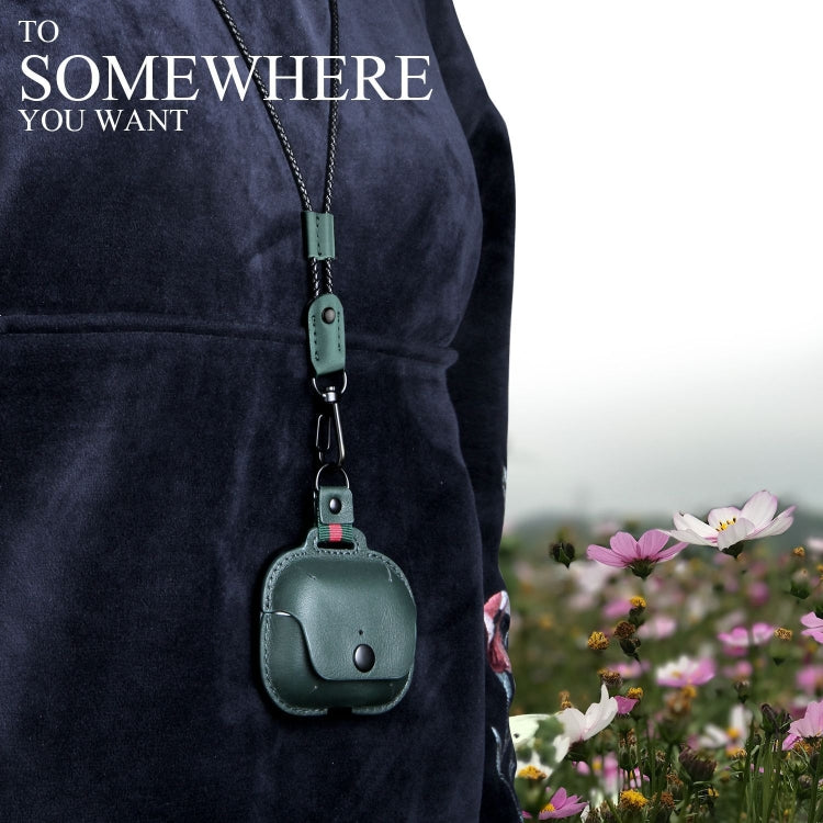 Earphone Cowhide Leather Sleeve Storage Box Protective Case with Lanyard For AirPods Pro(Green)