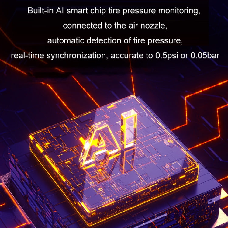 21. Built-in AI smart chip tire pressure monitoring, connected to the air nozzle, automatically detects the tire pressure, real-time synchronization, accurate to 0.5psi or 0.05bar