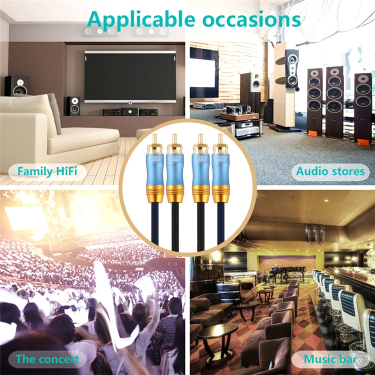 EMK 2 x RCA Male to 2 x RCA Male Gold Plated Connector Nylon Braid Coaxial Audio Cable for TV / Amplifier / Home Theater / DVD, Cable Length:1.5m(Dark Blue)