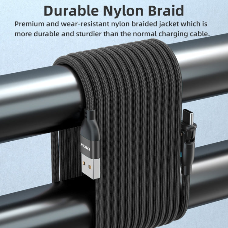 ENKAY 180 Degrees Rotating USB to Type-C 3A Fast Charging Data Cable with LED Light, Length:1m(Black)