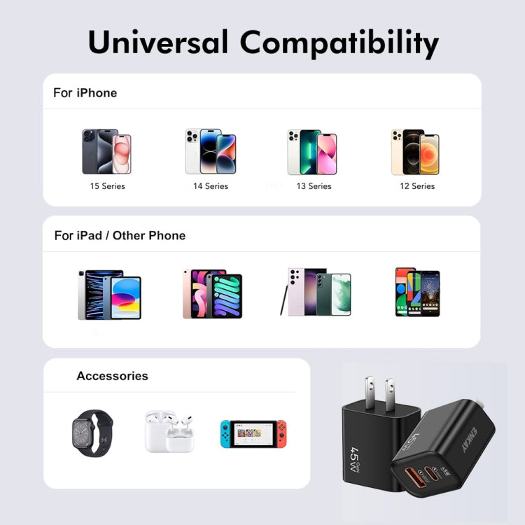 USB-C&USB-A Toal: 20V⎓2.25A 45W(Max)
