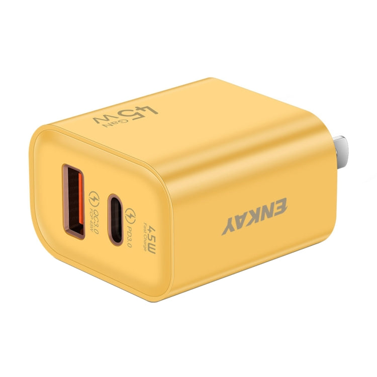 ENKAY FC-001 45W USB-A + USB-C / Type-C Dual Ports Quick Charger, US Plug(Yellow)