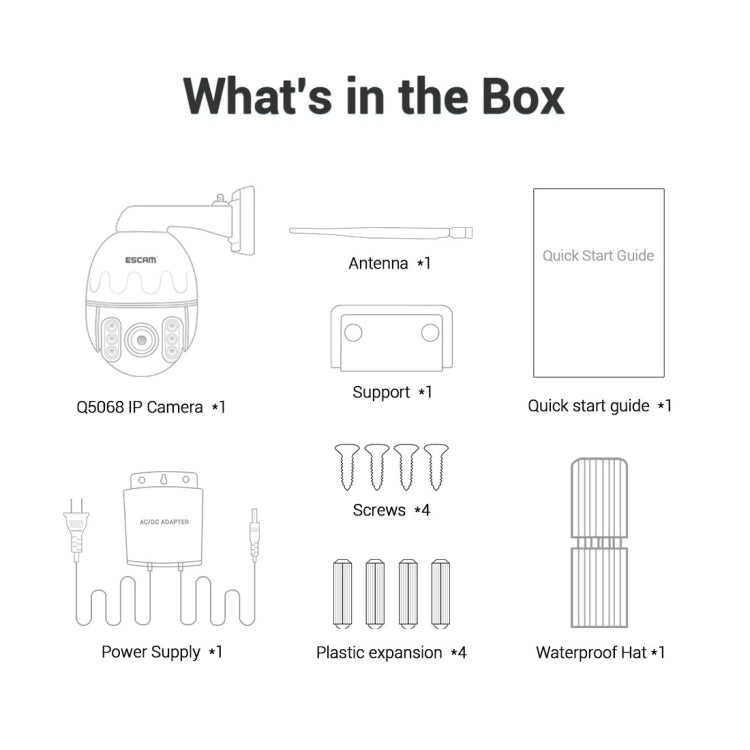 ESCAM Q5068 H.265 5MP Pan / Tilt / 4X Zoom WiFi Waterproof IP Camera, Support ONVIF Two Way Talk & Night Vision, AU Plug