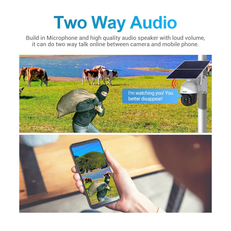 ESCAM QF724 3MP 24h Recording Cloud Storage PT 4G PIR Alarm IP Camera with Solar Panel, US Signal Bands