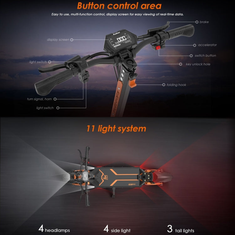 1. Powered by 2x1200W motors, can reach a maximum power of 1500W and a maximum speed of 65km/h, enabling you to have a powerful and exciting cross-country ride.