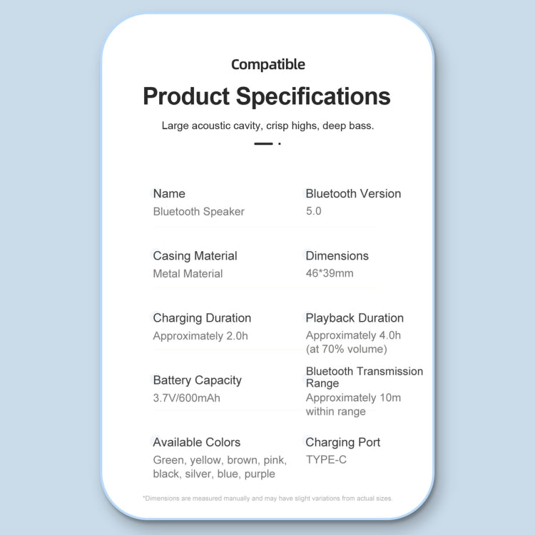 11. Big power with small volume, redefines the super bass concept, the speaker comes equipped a downward passive radiator