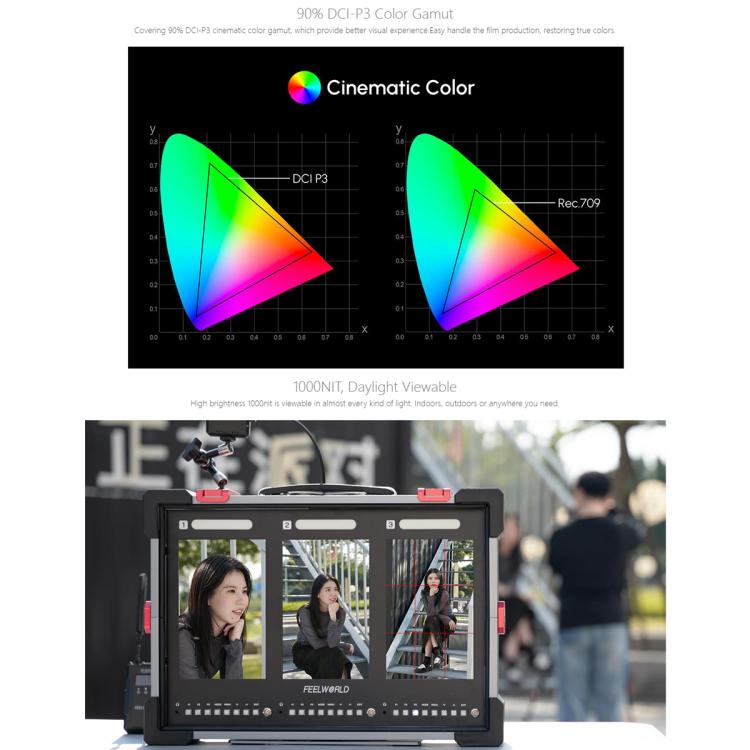 FEELWORLD PS101 Triple 10.1-inch Vertical Dispaly Carry-on Monitor High Brightness 1000nit Portable Protective Case (UK Plug)