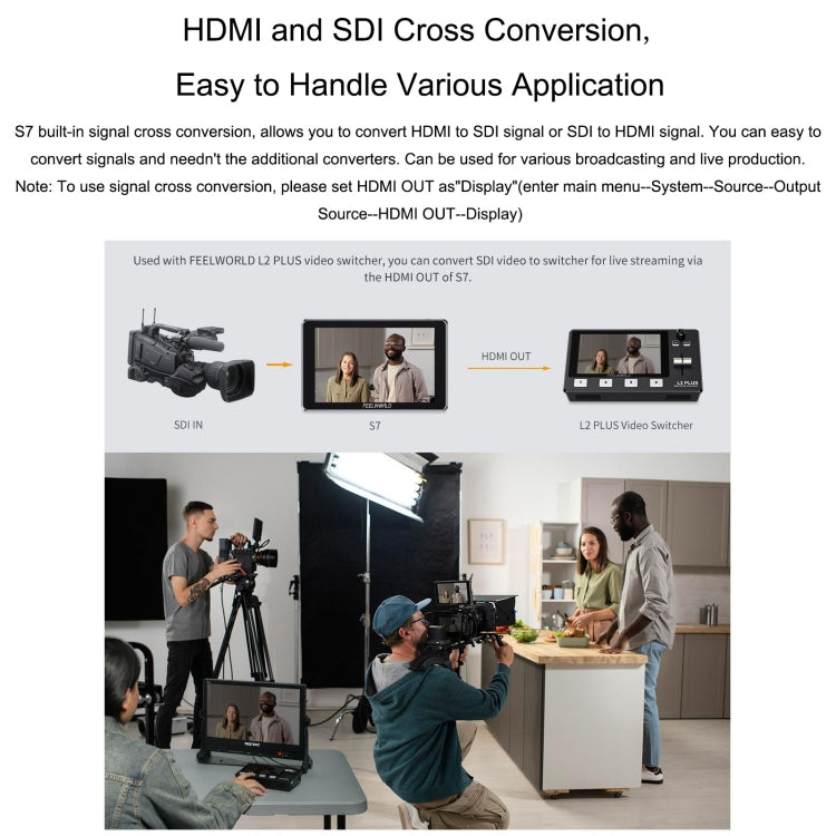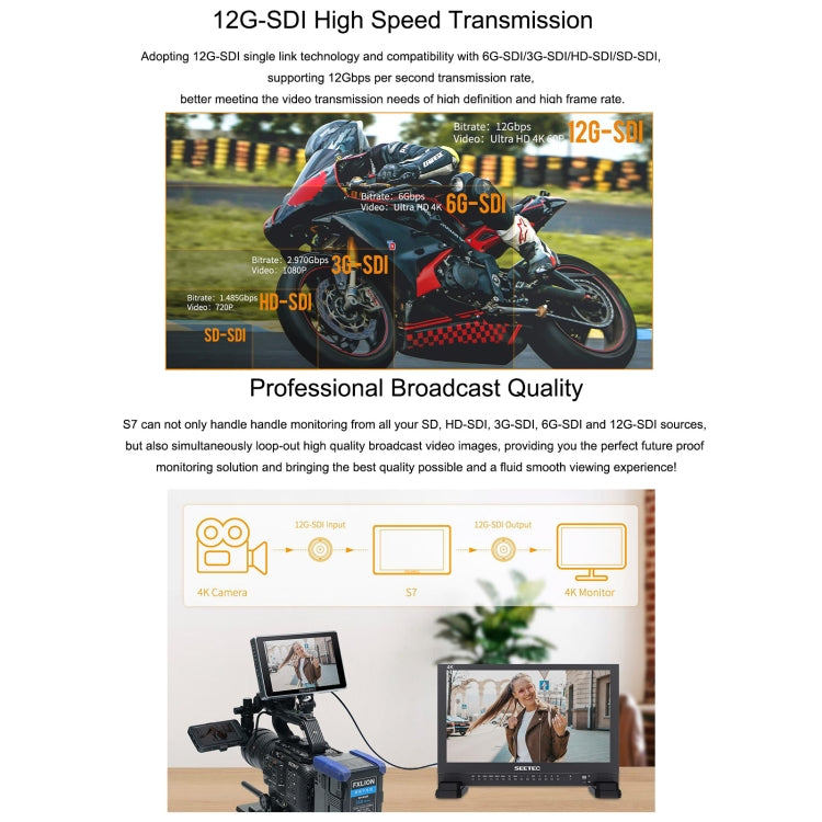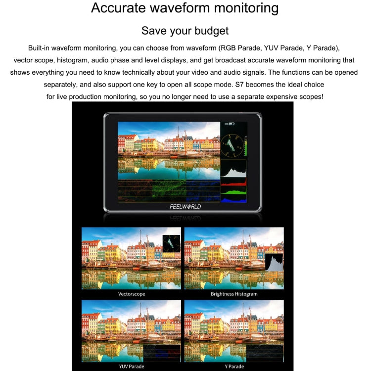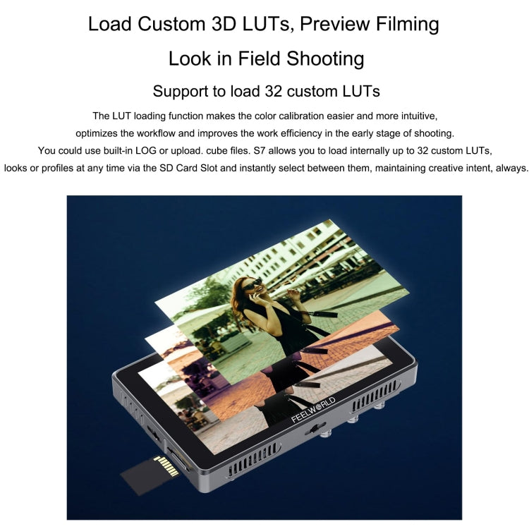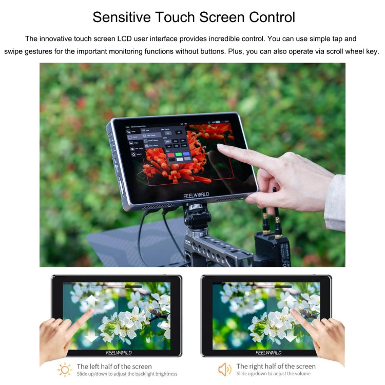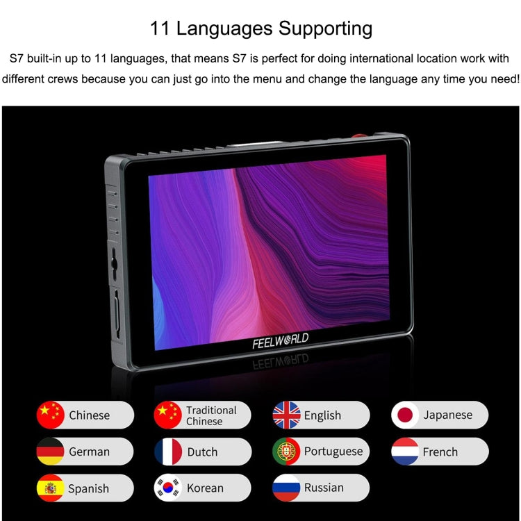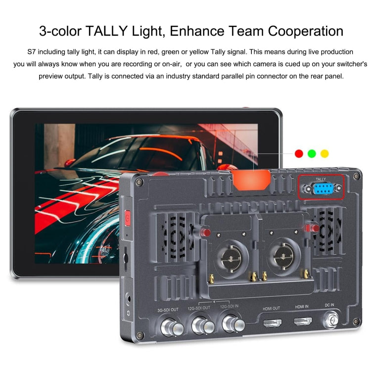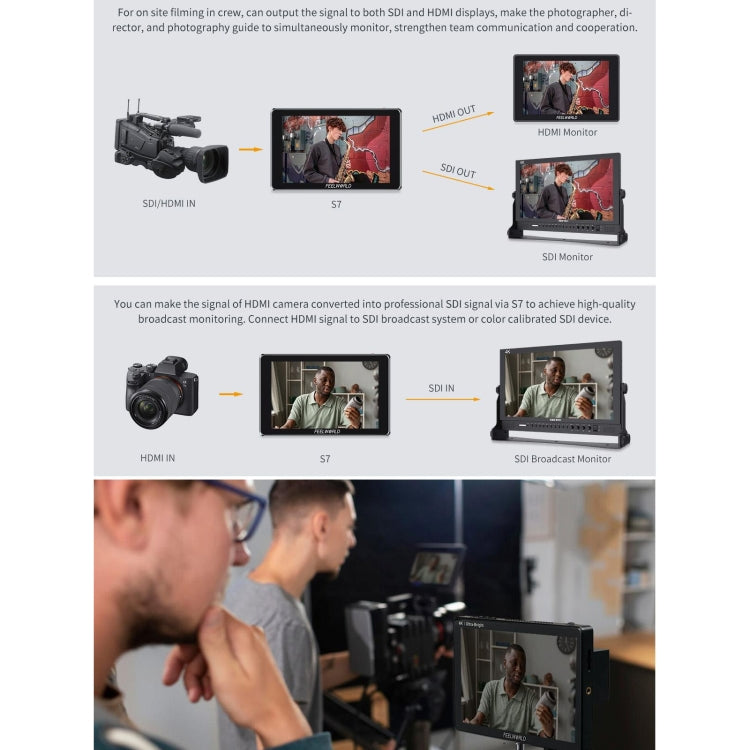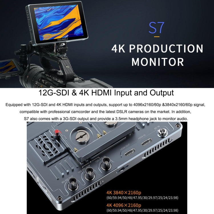 FEELWORLD S7 7-inch 12G-SDI HDMI2.0 Camera Field Monitor High Brightness1600nit Touchscreen (Black)