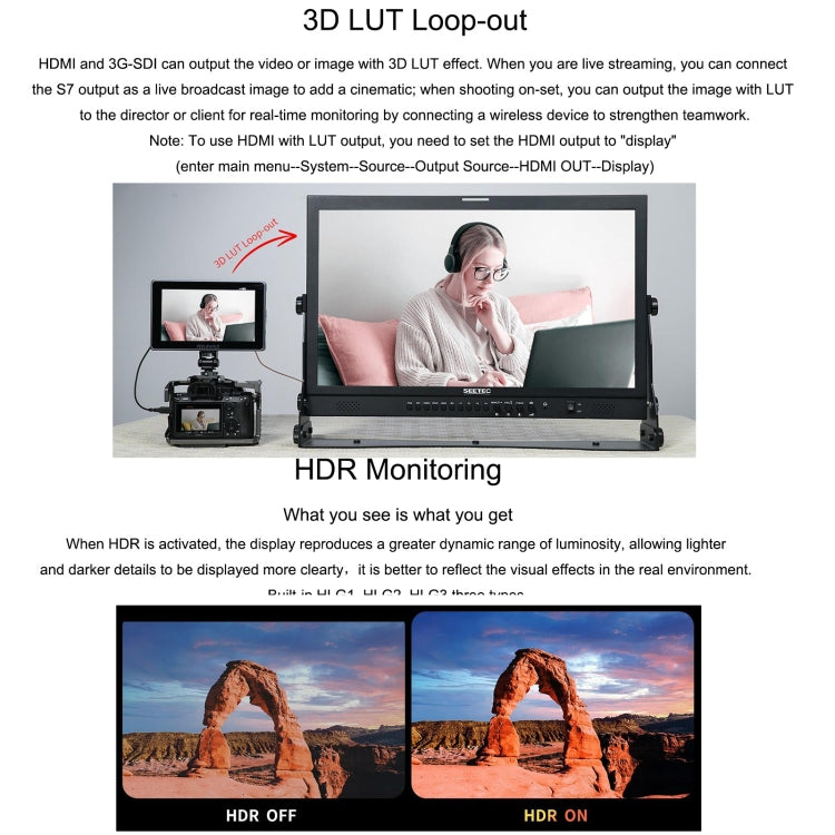 8. Support 3D LUT Log to REC.709 and user 3D LUT upload (up to 32)