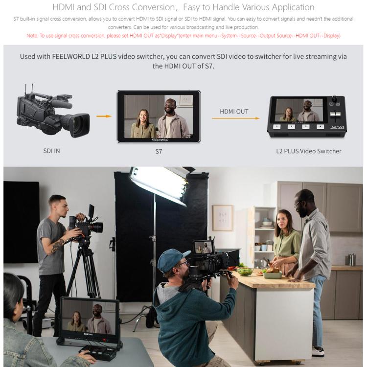 FEELWORLD S7 7 inch 12G SDI HDMI2.0 Camera Field Monitor High Brightness1600nit Touchscreen Monitor (Black)
