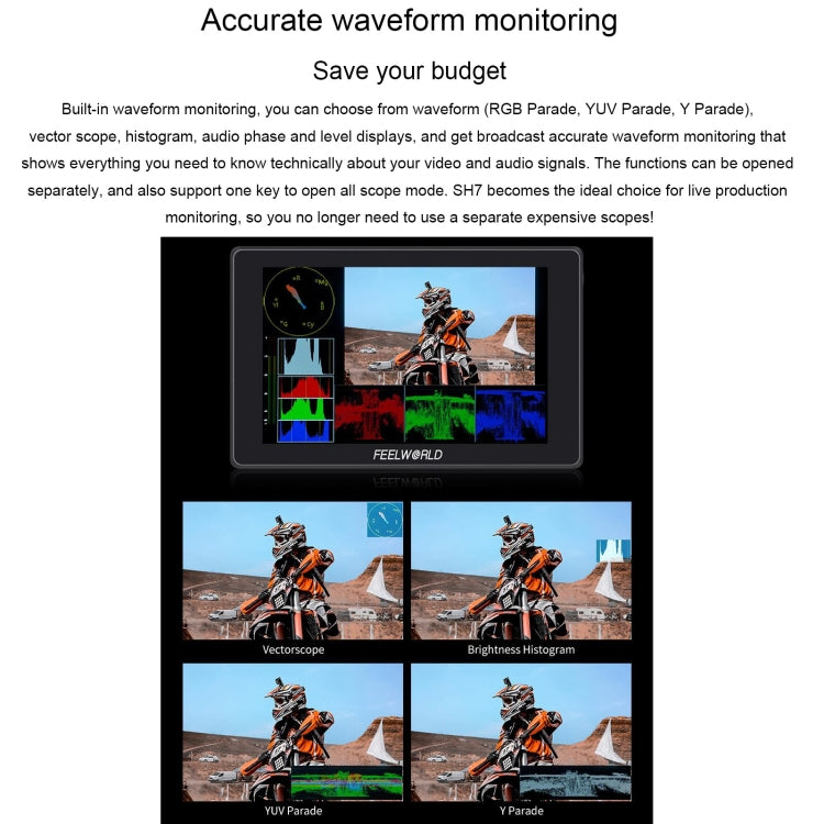 FEELWORLD SH7 7-inch Ultra Bright 2200nit On-camera Monitor SDI HDMI Cross Conversion (Black)
