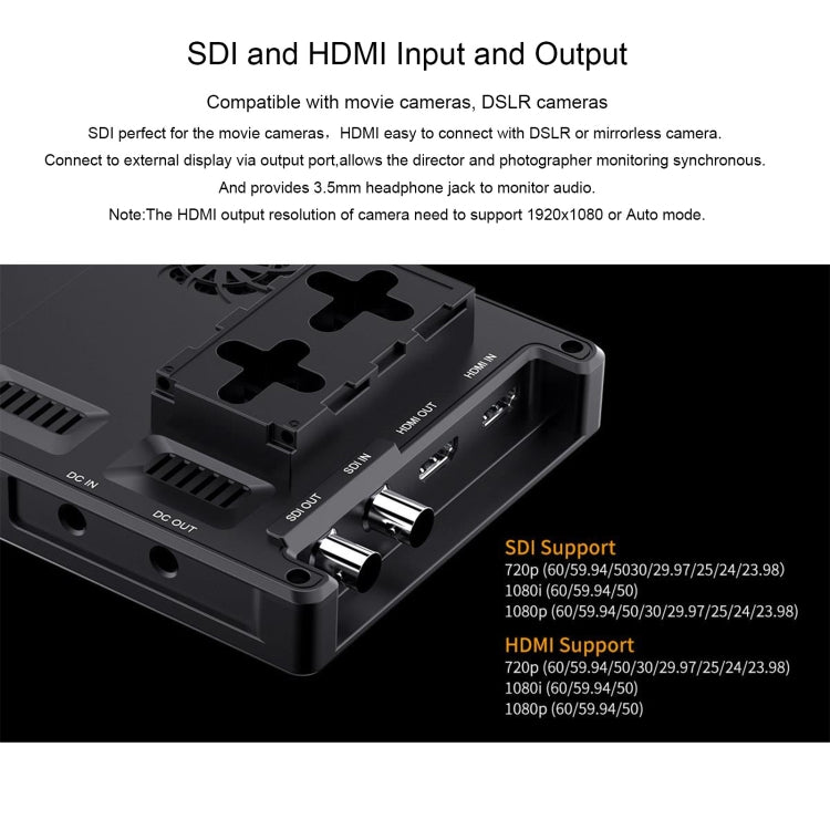 2. SDI Support Format: 720p (60/59.94/50/30/29.97/25/24/23.98), 1080i (60/59.94/50),1080p (60/59.94/50/30/29.97/25/24/23.98)
