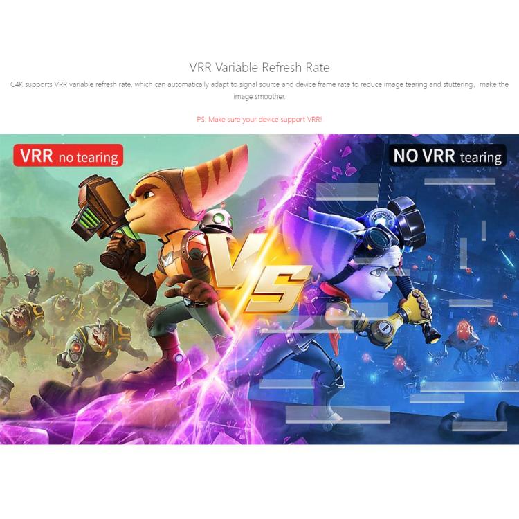 7. Support Variable refresh rate(VRR), real time adaptation the signal source and device frame rate