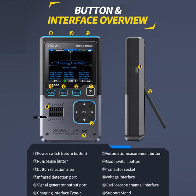 FNIRSI DSO-TC4 3 In 1 Oscilloscope Transistor Tester Signal Generator 10M Bandwidth Burn-In Proof