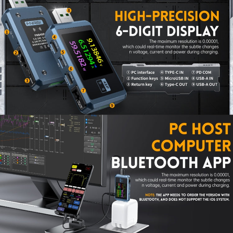 FNIRSI FNB48P USB Mobile Phone DC Power Charger Detector, Color: Bluetooth Blue