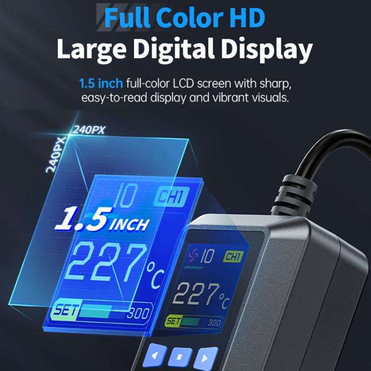 2. Brushless fan, linear adjustment: Using low-energy consumption, high-efficiency brushless fan, longer service life and lower noise. Support 1~20 wind speed linear adjustment, desoldering is more convenient.