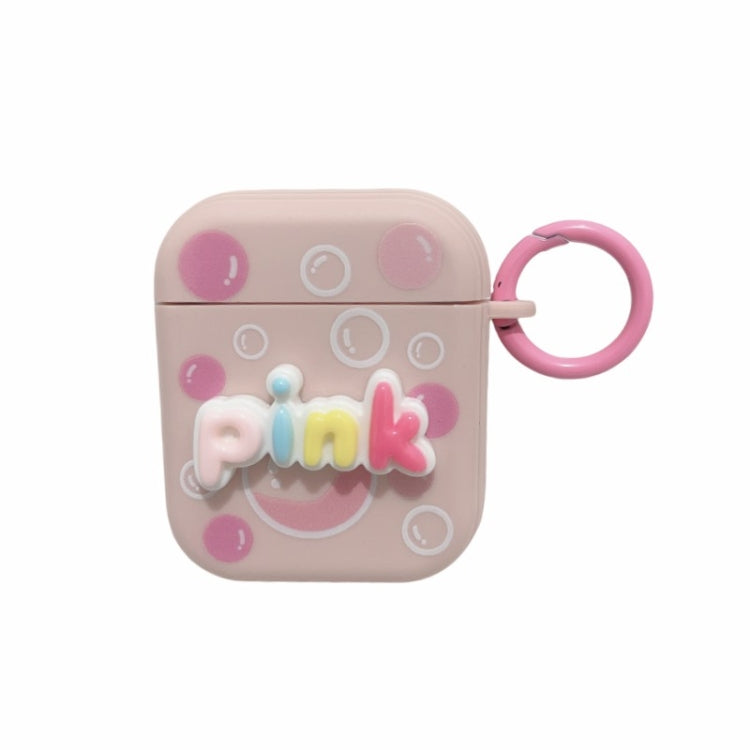 For AirPods 2 / 1 Fresh 3D Text Skin Feel Earbuds Box PC Case(Pink)