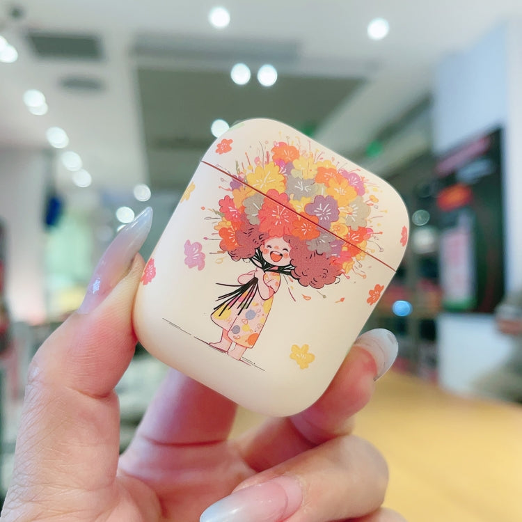 For AirPods 2 / 1 Girl Pattern Earbuds Box Frosted TPU Case(Flower)