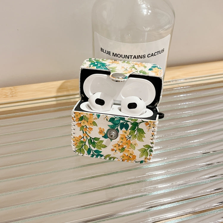 For AirPods 3 PU Leather Wireless Earphone Case(Yellow Flower)