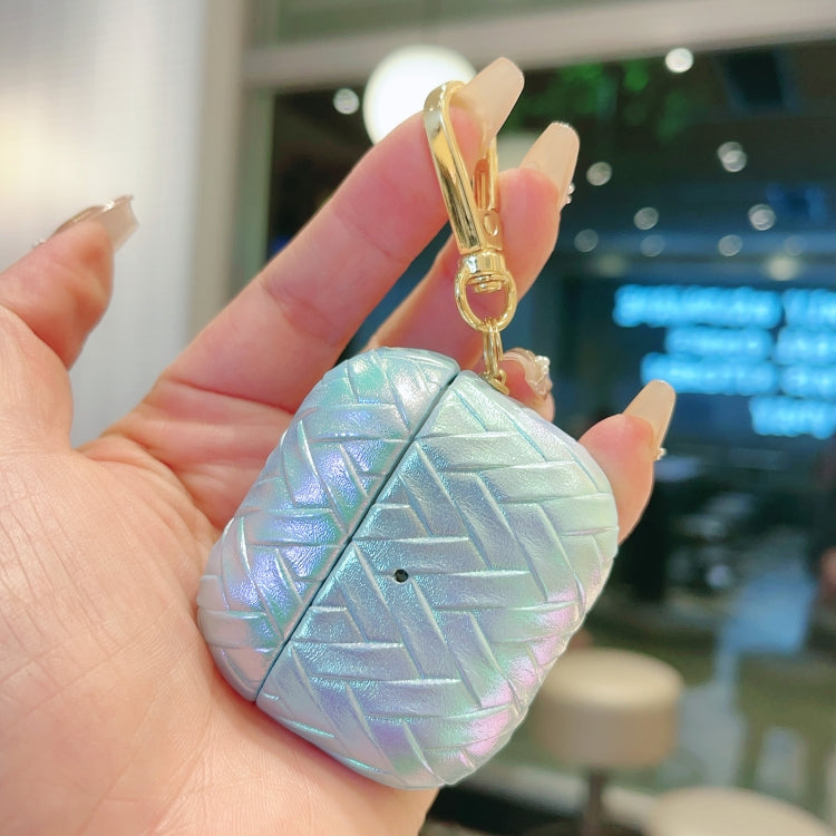 For AirPods 4 Colorful Weaving Texture Earbuds Box PC Case with Hook(White)