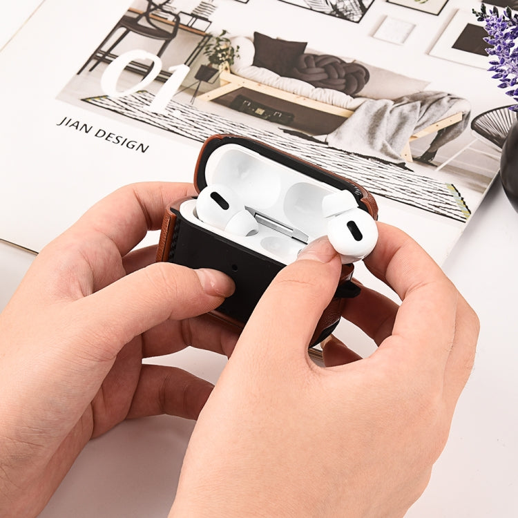 For AirPods Pro Leather Texture Earphone Protective Case(Black Red)