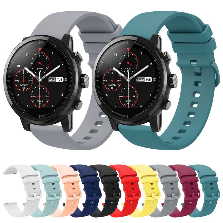 For Amazfit 2 Stratos 22mm Solid Color Soft Silicone Watch Band(Sapphire Green)