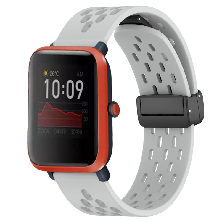 For Amazfit Bip 1S 20mm Folding Magnetic Clasp Silicone Watch Band(Light Grey)