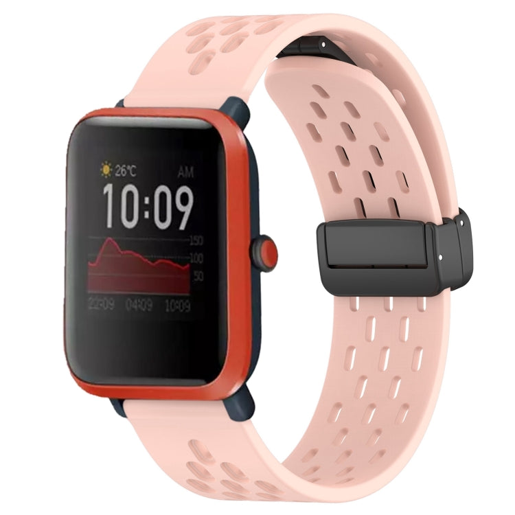 For Amazfit Bip 1S 20mm Folding Magnetic Clasp Silicone Watch Band(Pink)