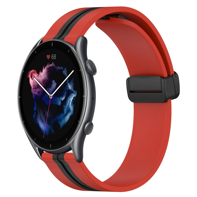 For Amazfit GTR 3 Pro 22mm Folding Magnetic Clasp Silicone Watch Band(Red+Black)