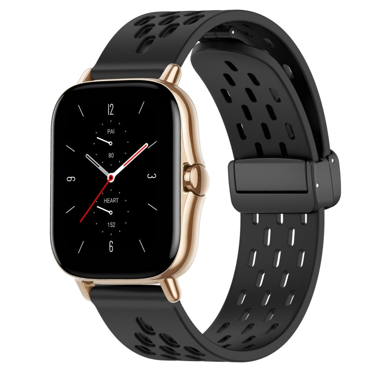 For Amazfit GTS 2 20mm Folding Magnetic Clasp Silicone Watch Band(Black)