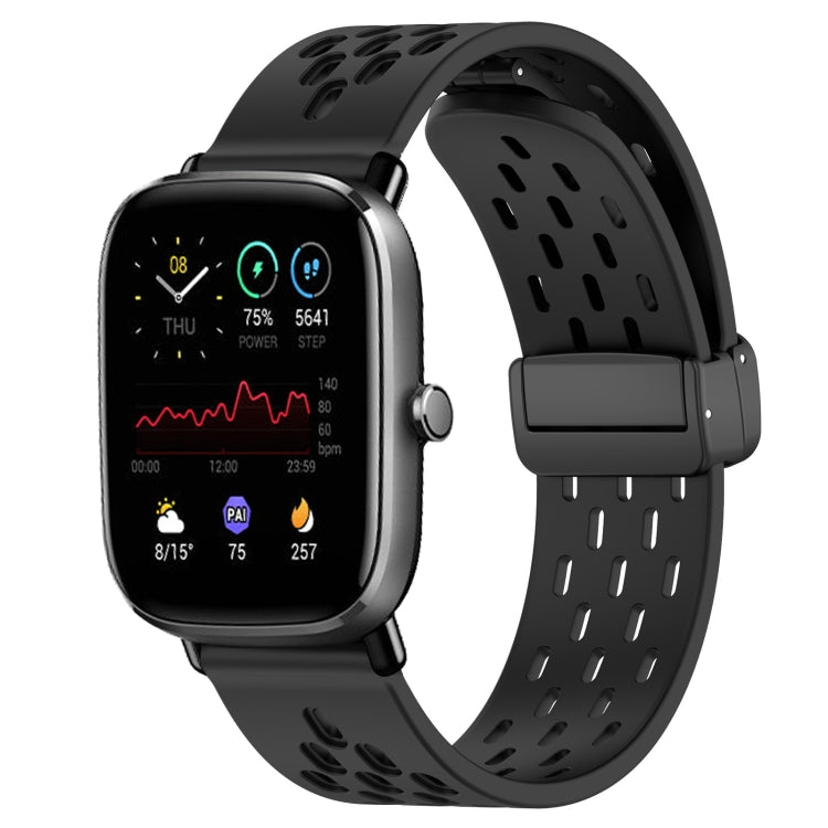 For Amazfit GTS 2 Mini 20mm Folding Magnetic Clasp Silicone Watch Band(Black)