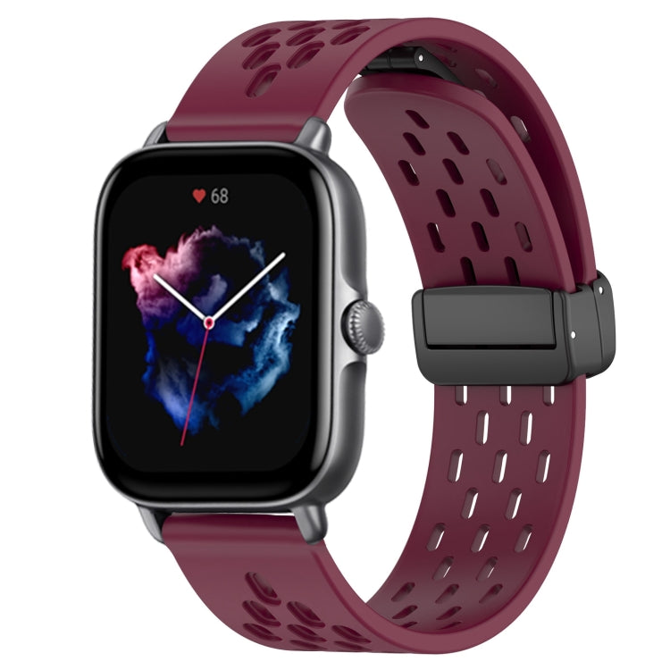 For Amazfit GTS 3 20mm Folding Magnetic Clasp Silicone Watch Band(Burgundy)