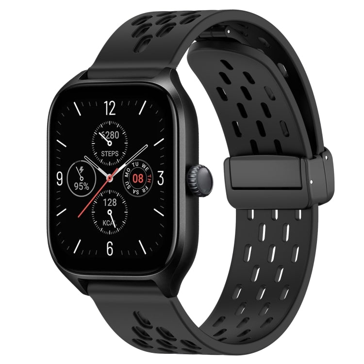 For Amazfit GTS 4 20mm Folding Magnetic Clasp Silicone Watch Band(Black)