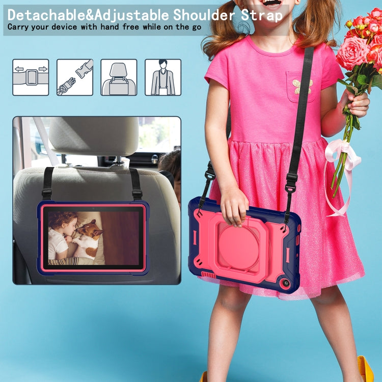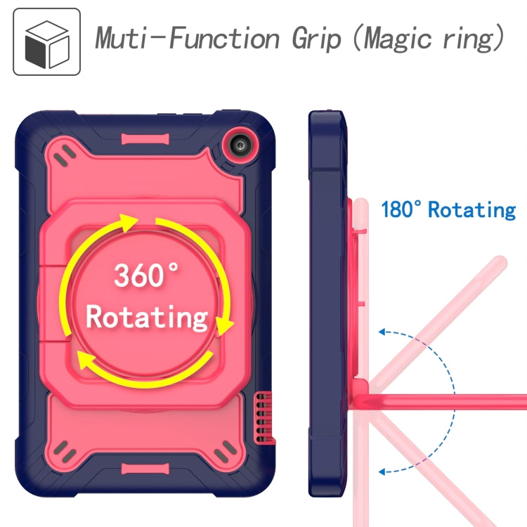 For Amazon Kindle Fire 7 2022 Silicone + PC Bracelet Holder Tablet Case(Navy Blue + Rose Red)