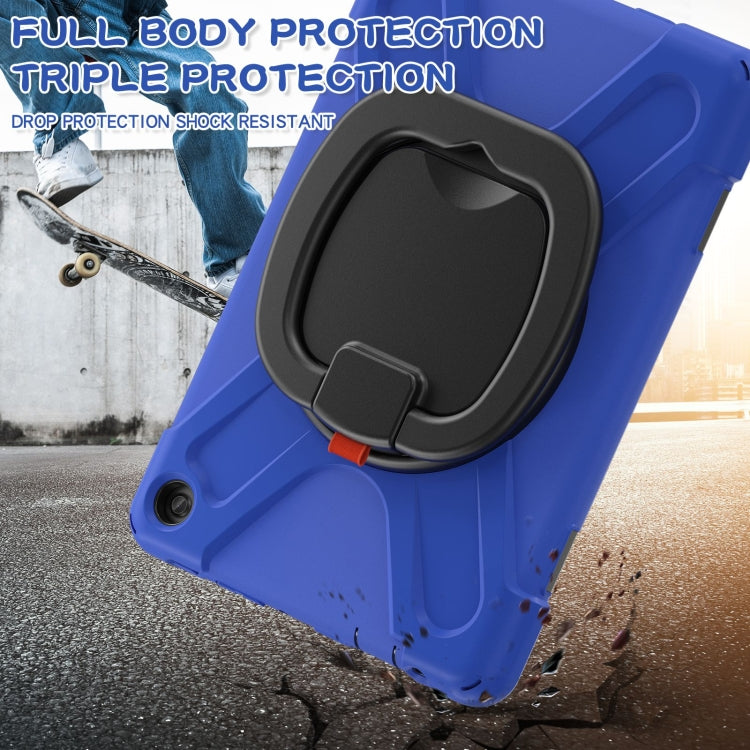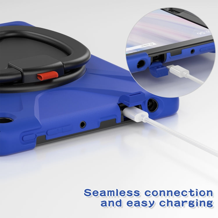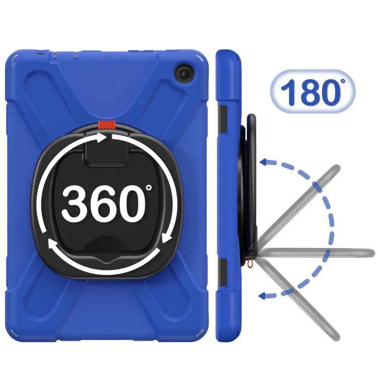 For Amazon Kindle Fire HD10 2023 Silicone Hybrid PC Tablet Case with Holder & Shoulder Strap(Blue)