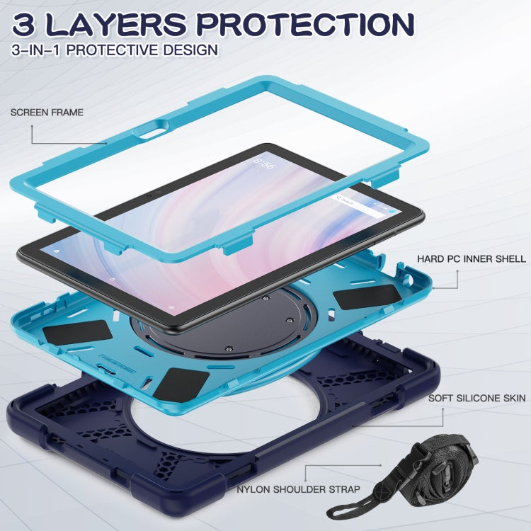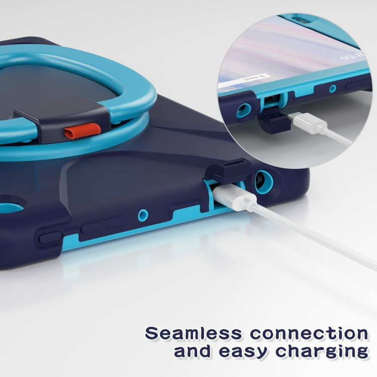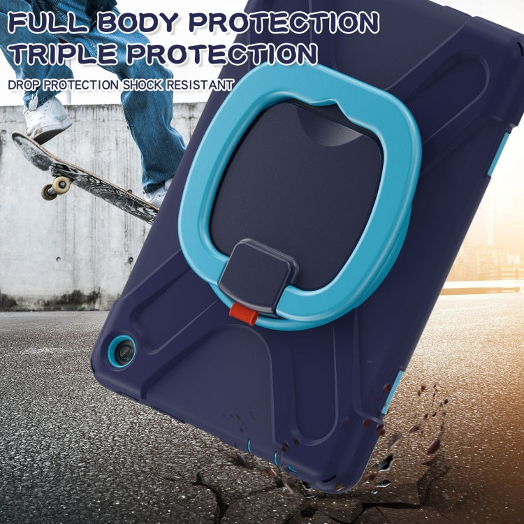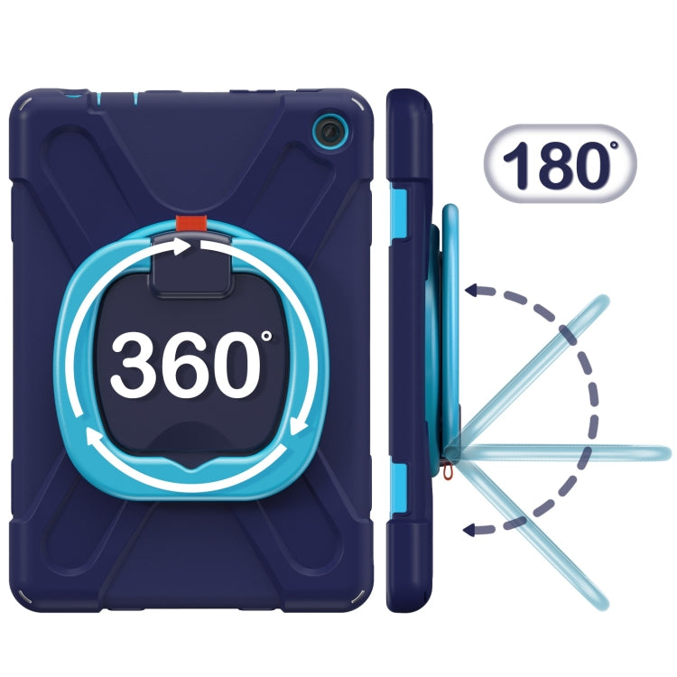 For Amazon Kindle Fire HD10 2023 Silicone Hybrid PC Tablet Case with Holder & Shoulder Strap(Navy Blue)