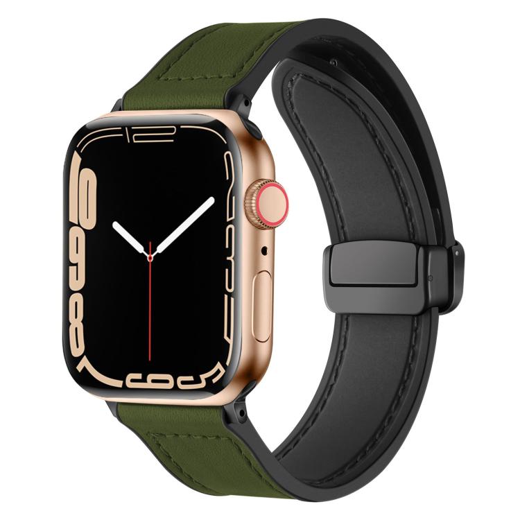 For Apple Watch 38 / 40 / 41 / S10 42mm xDfind Crazy Horse Pattern Silicone Skin Magnetic Buckle Watch Band(Army Green)