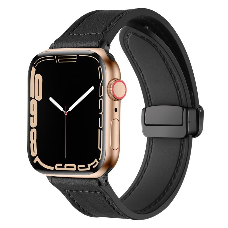 For Apple Watch 38 / 40 / 41 / S10 42mm xDfind Crazy Horse Pattern Silicone Skin Magnetic Buckle Watch Band(Black)